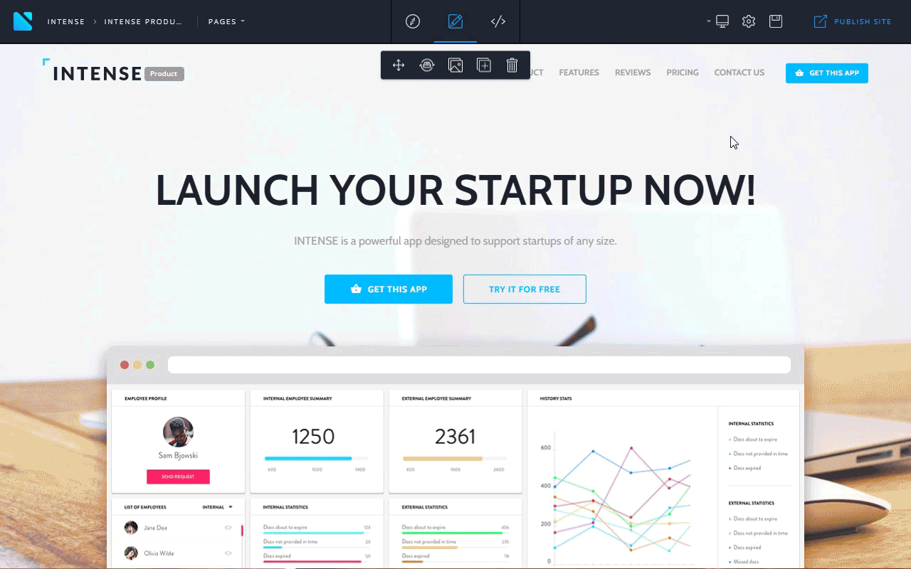 Easily change any element of Intense with the best visual drag and drop builder.